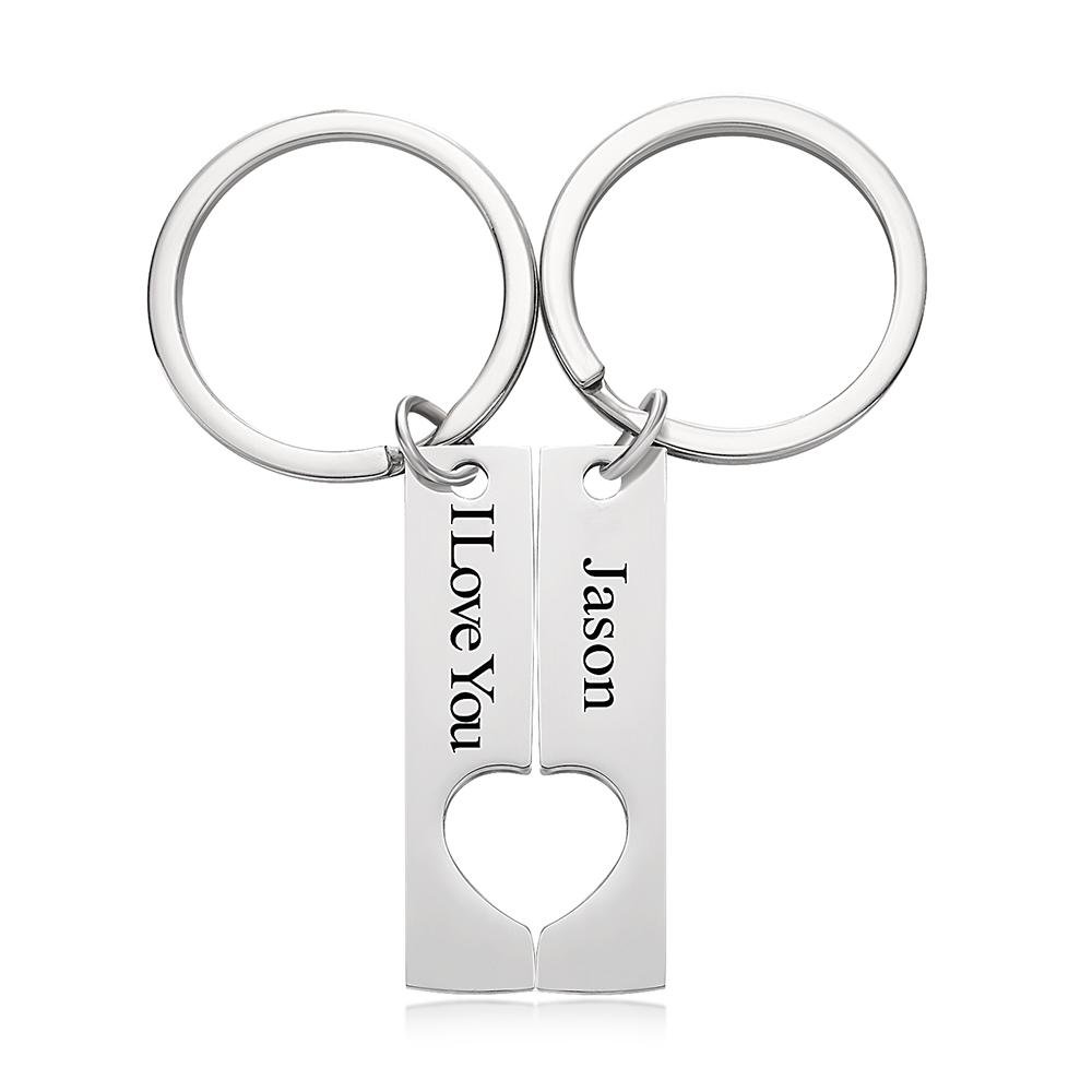 Custom Engraved Stainless Steel Couples Keychains | Personalized Text Keyring