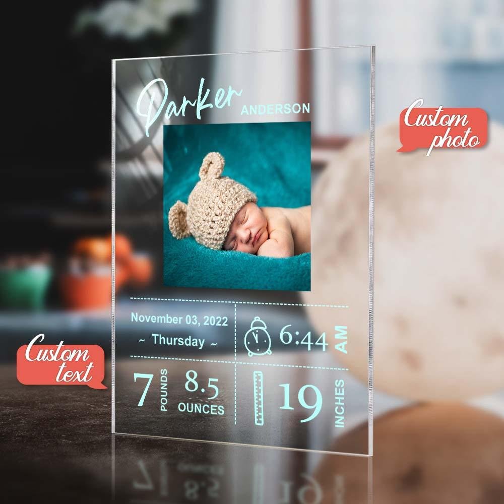 Baby Birth Stats Acrylic Plaque Custom Photo Keepsake