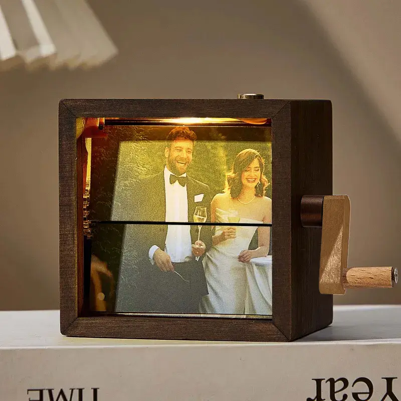 Bring memories to life with a custom hand-cranked flipbook frame, crafted from black walnut wood — a beautiful Valentine’s gift and timeless photo keepsake.