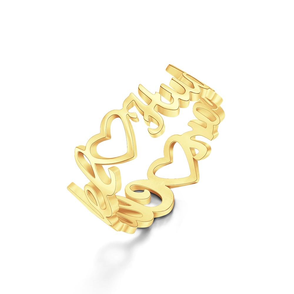 • 🖋️ Ring customised with two names crafted into a graceful heart shape