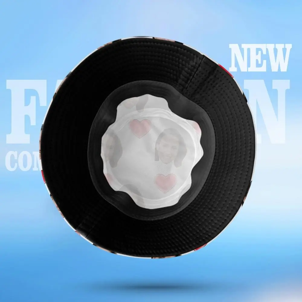 Custom Face Heart Print Bucket Hat for Summer