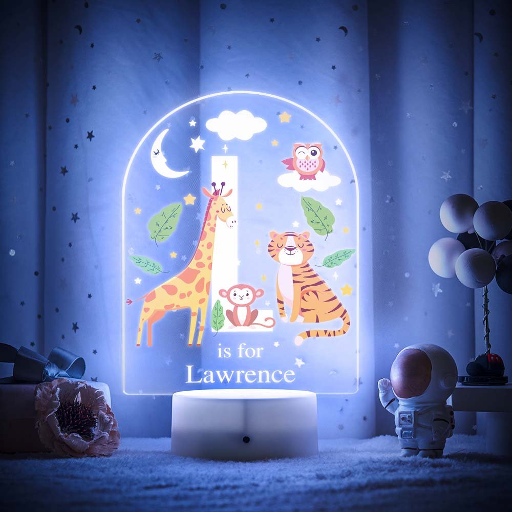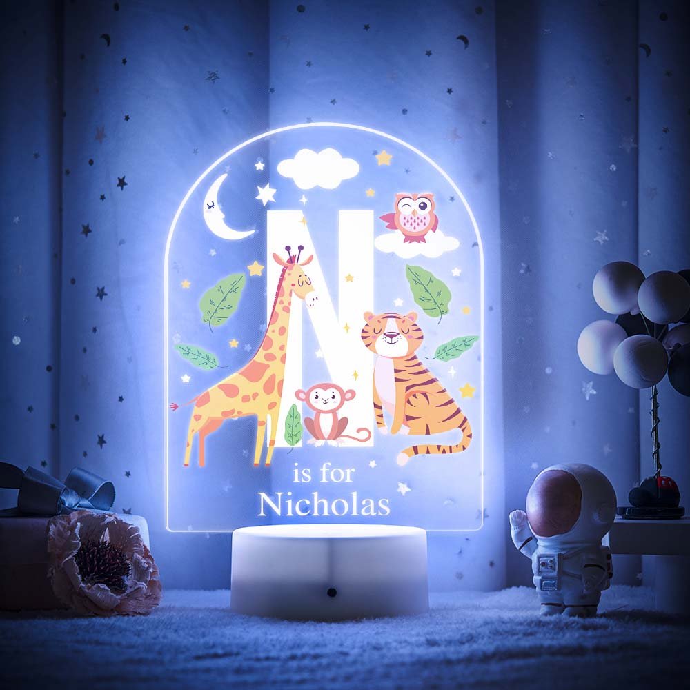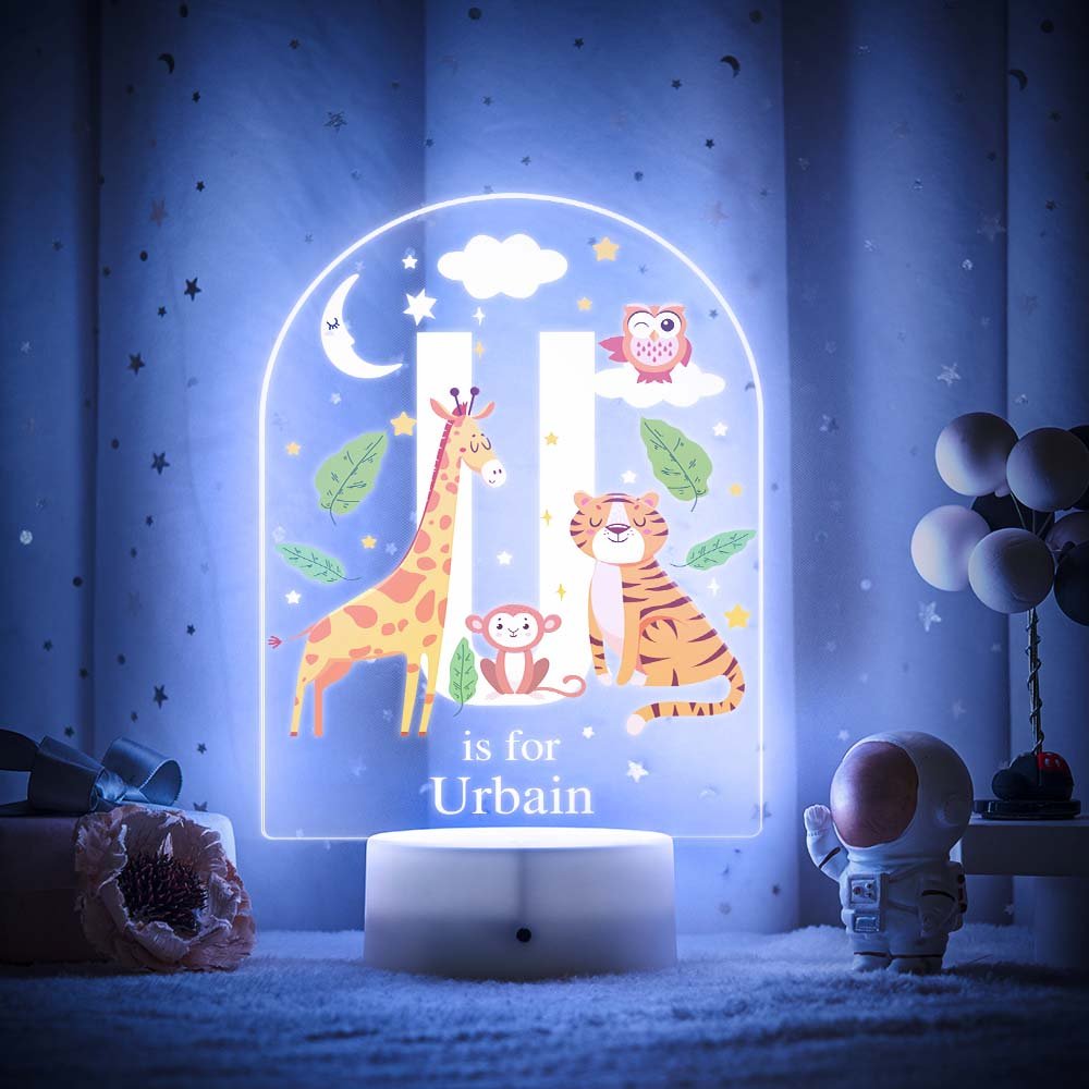 Personalised Animal Alphabet Night Light for Baby Nursery