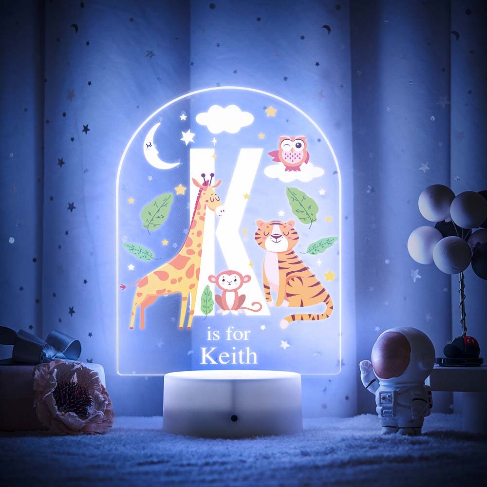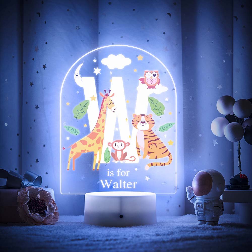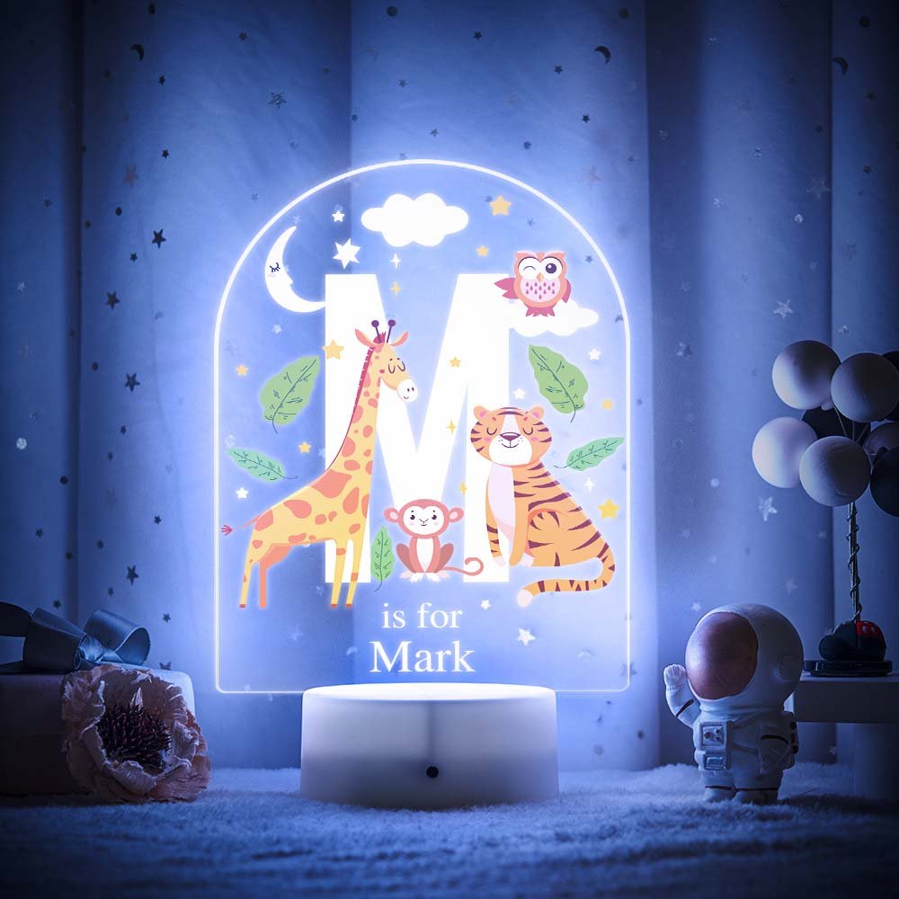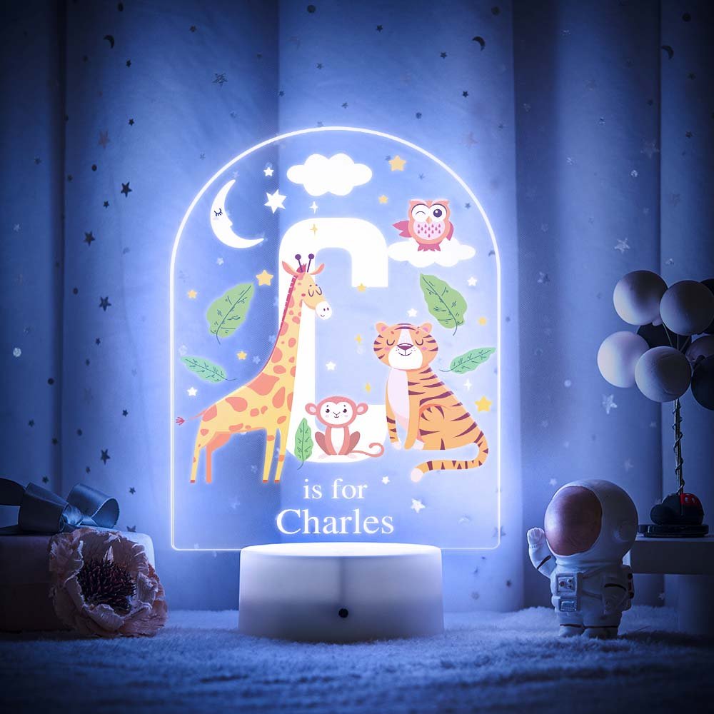 Personalised Animal Alphabet Night Light for Baby Nursery